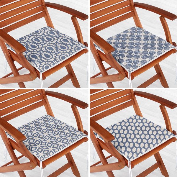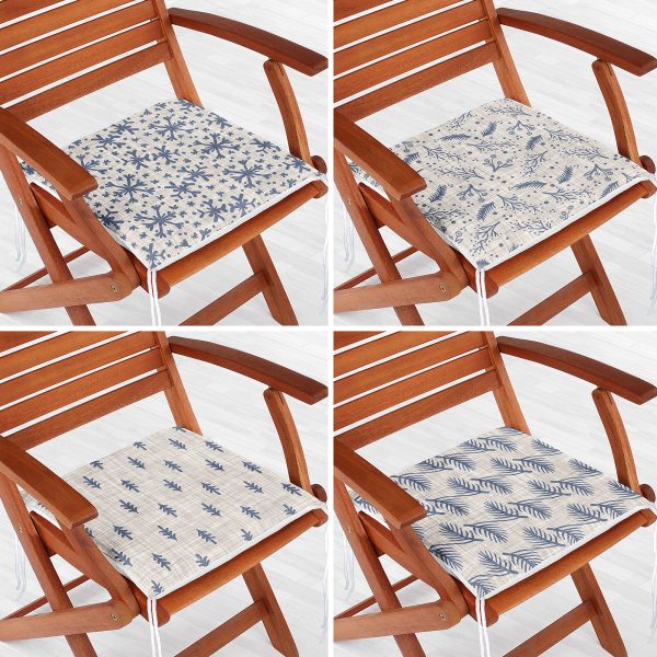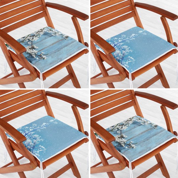 4’lü Mavi Zeminde Dal ve Çiçek Tasarımlı Fermuarlı Sandalye Minderi Seti