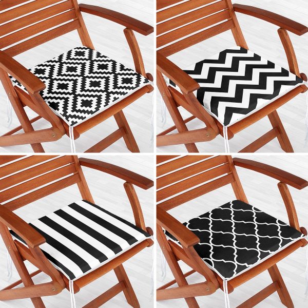 4’lü Siyah Beyaz Geometrik Şekiller Fermuarlı Sandalye Minderi Seti