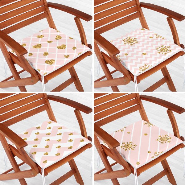 4’lü Gold Detaylı Pembe Zigzag Tasarımlı Fermuarlı Sandalye Minderi Seti