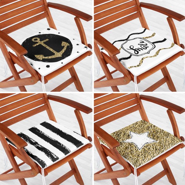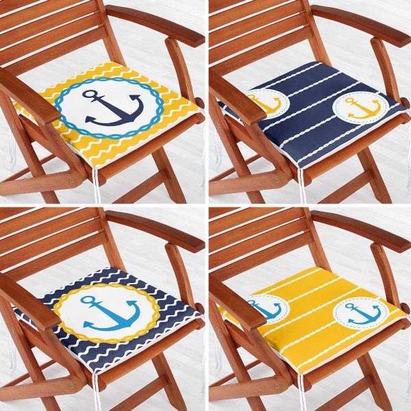 4’lü Sarı Lacivert Çapa Motifli Özel Tasarım Fermuarlı Sandalye Minderi Seti