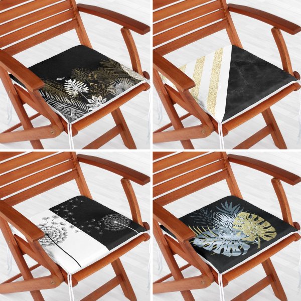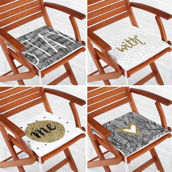 4’lü Renkli Zemin Üzerinde Gold Detaylı Yazılı Modern Fermuarlı Sandalye Minderi Seti