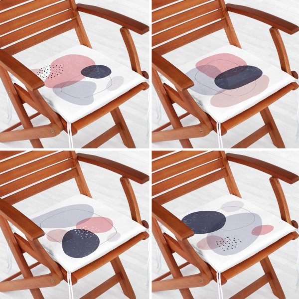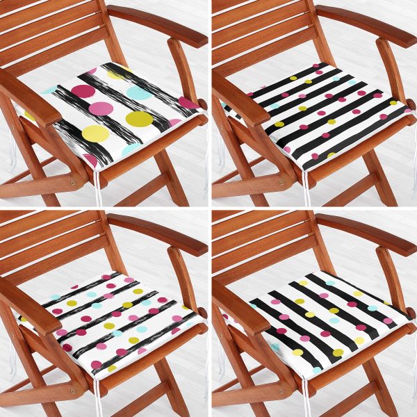 4’lü Renkli Puantiye Motifli Dijital Baskılı Modern Fermuarlı Sandalye Minderi Seti