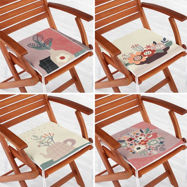 4’lü Çiçek Buketleri Tasarımlı Dijital Baskılı Modern Fermuarlı Sandalye Minderi Seti