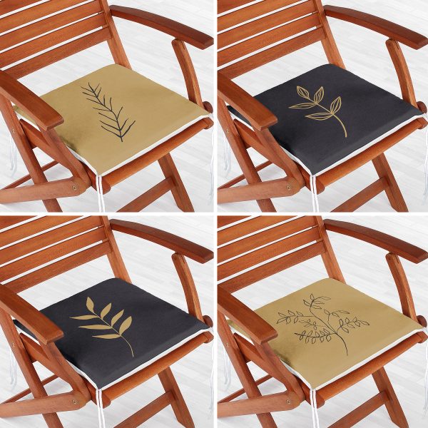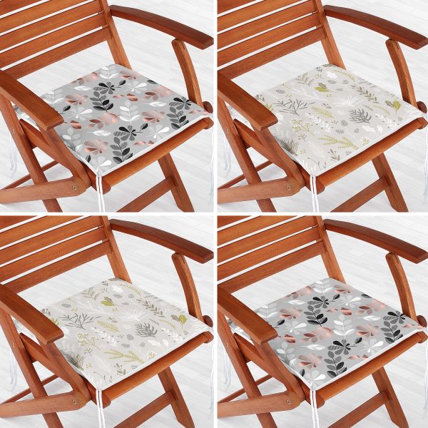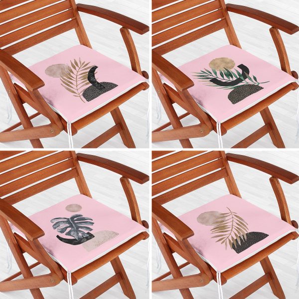 4’lü Renkli Zemin Üzerinde Yaprak Desenli Modern Fermuarlı Sandalye Minderi Seti
