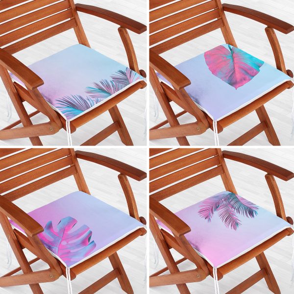 4’lü Neon Tropik Yaprak Desenli Dijital Baskılı Özel Tasarım Fermuarlı Sandalye Minderi Seti