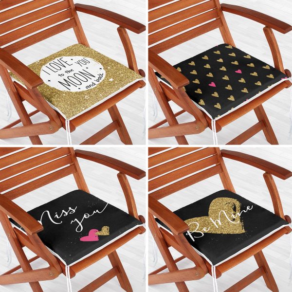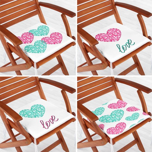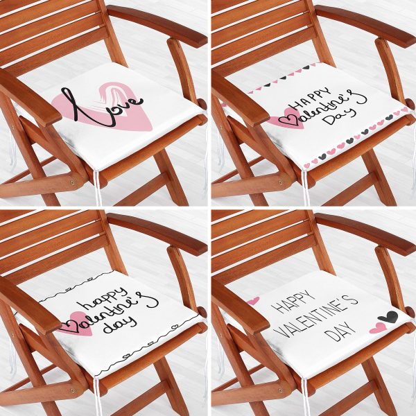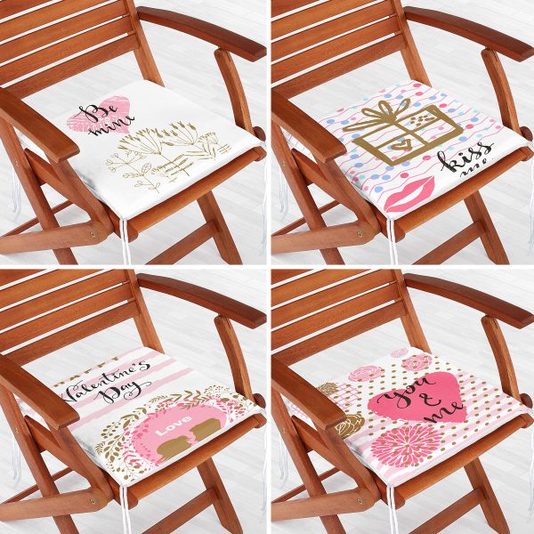 4’lü Sevgililer Günü Konseptli Özel Tasarım Modern Kombin Fermuarlı Sandalye Minderi Seti