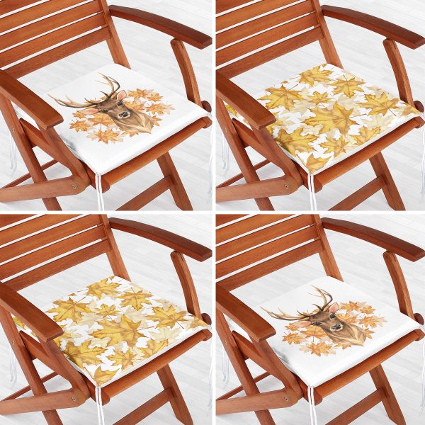 4’lü Kurumuş Sonbahar Yaprakları & Geyik Tasarımlı Dijital Baskılı Modern Fermuarlı Sandalye Minderi Seti