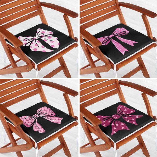 4’lü Siyah Zemin Pembe Kurdele Tasarımlı Dijital Baskılı Modern Fermuarlı Sandalye Minderi Seti