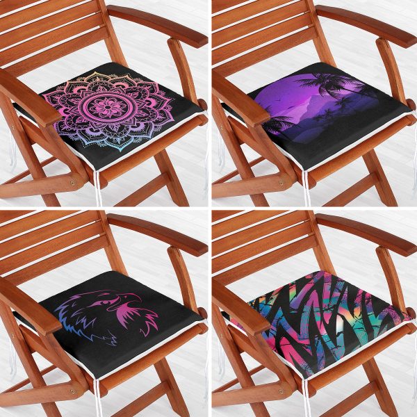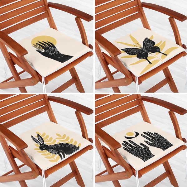 4’lü Kelebek & Mehndi Özel Tasarımlı Dijital Baskılı Modern Fermuarlı Sandalye Minderi Seti