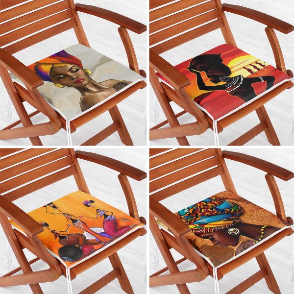 4’lü Etnik Afrika Kadın Motifli Özel Tasarım Fermuarlı Sandalye Minderi Seti