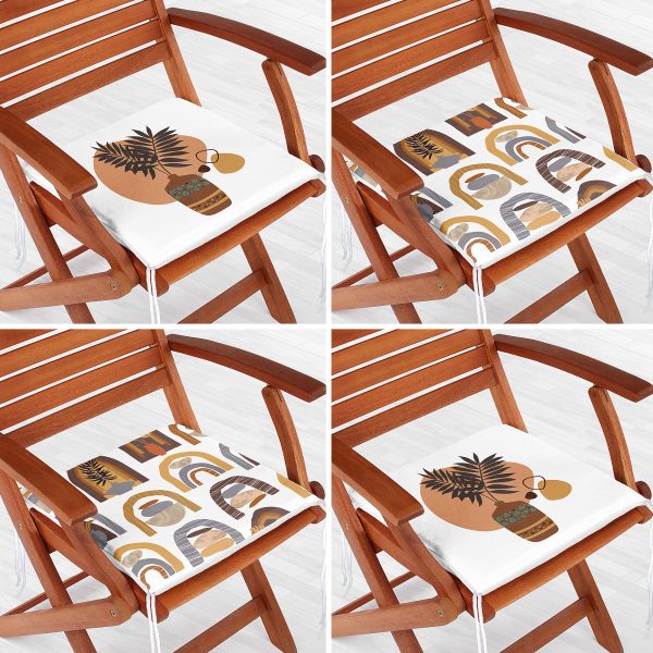 4’lü Bohem Motif Saksı Tasarımlı Fermuarlı Sandalye Minderi Seti