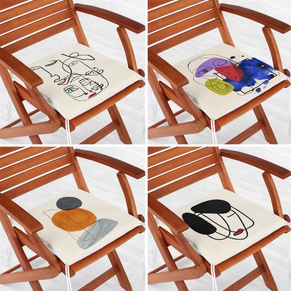 4’lü Renkli One Line Çizimli Dijital Baskılı Fermuarlı Sandalye Minderi Seti