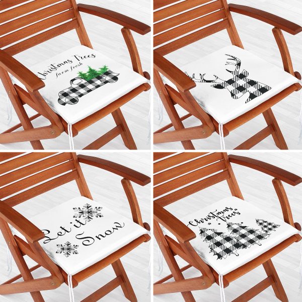 4’lü Ekose Temalı Mery Christmas Tasarımlı Fermuarlı Sandalye Minderi Seti