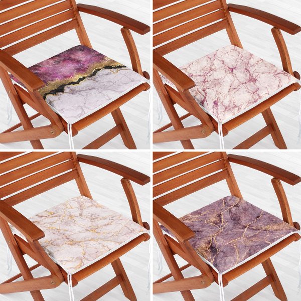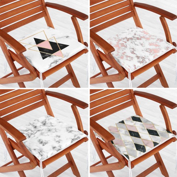 4’lü Geometrik Desenli Mermer Zemin Motifli Fermuarlı Sandalye Minderi Seti