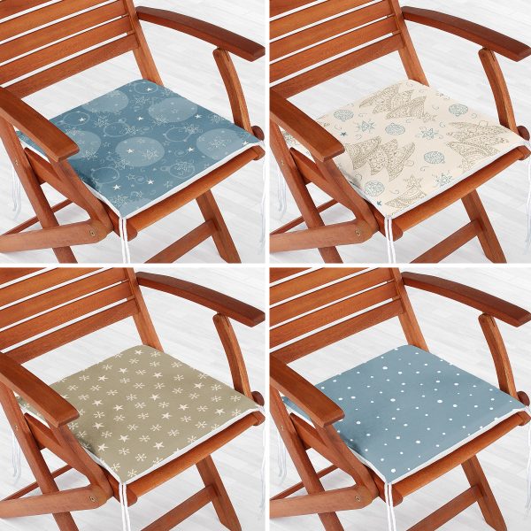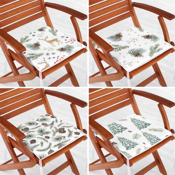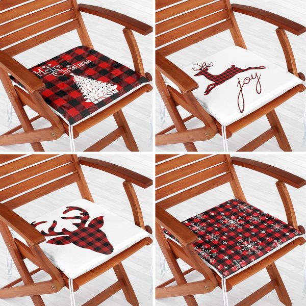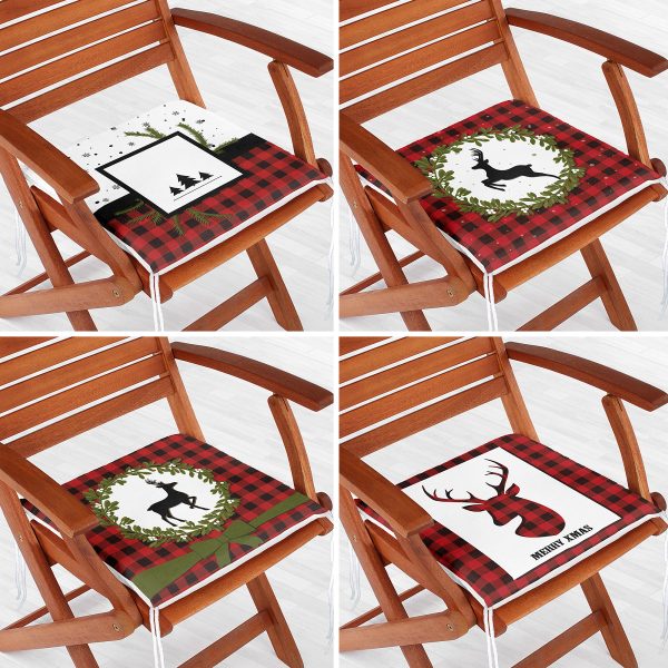 4’lü Ekose Zeminli Yılbaşı Desenli Fermuarlı Sandalye Minderi Seti