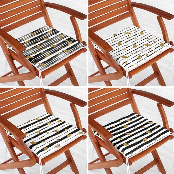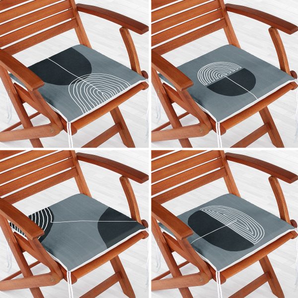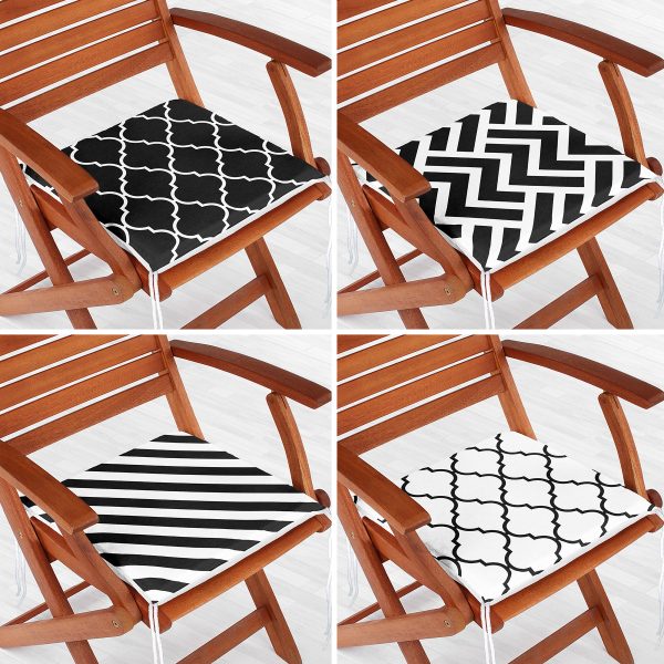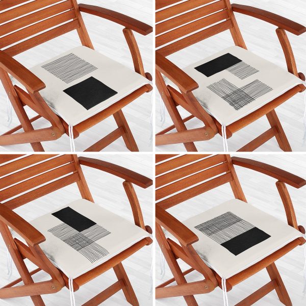 4’lü Siyah Beyaz Geometrik Şekilli Fermuarlı Sandalye Minderi Seti