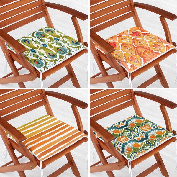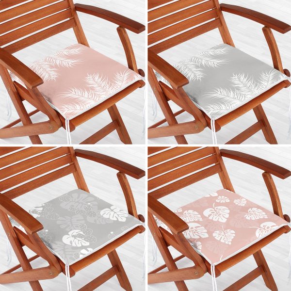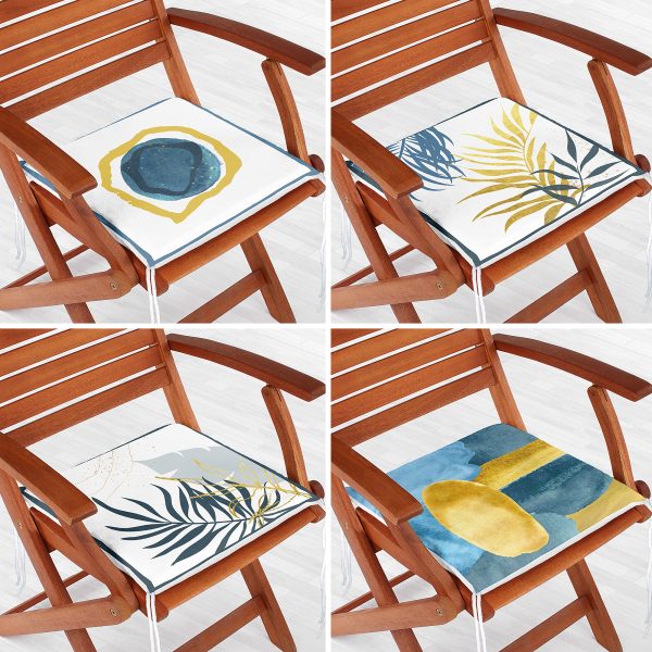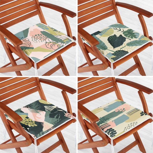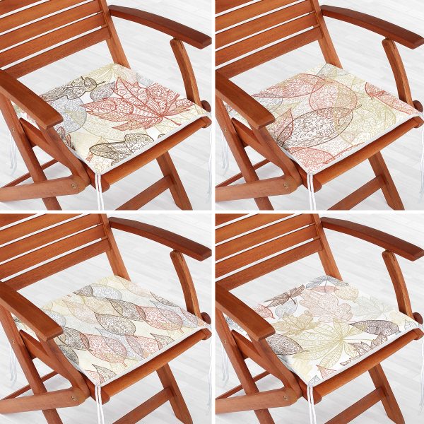 4’lü Renkli Zemin Üzerinde Yaprak Desenli Modern Fermuarlı Sandalye Minderi Seti