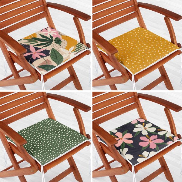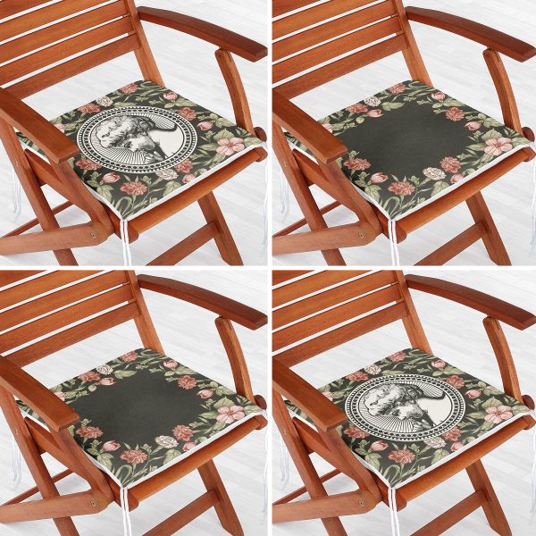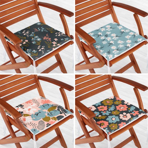 4’lü Renkli Zemin Üzerinde Çiçek Desenli Modern Fermuarlı Sandalye Minderi Seti