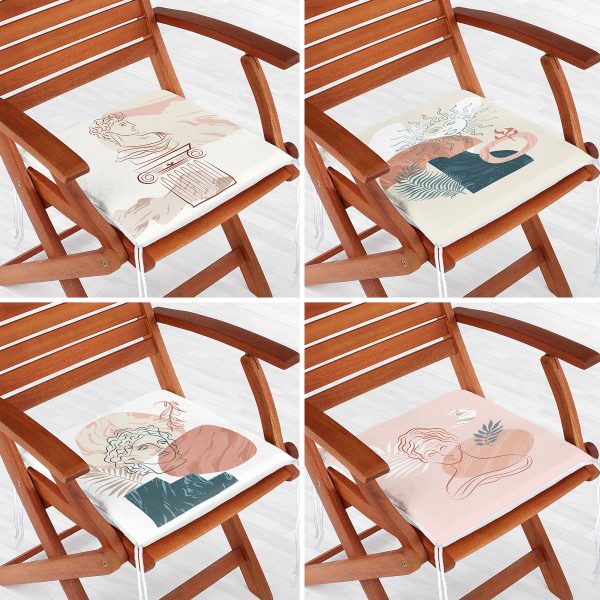4’lü Renkli Zemin Üzerinde Onedraw Çizimli Modern Fermuarlı Sandalye Minderi Seti