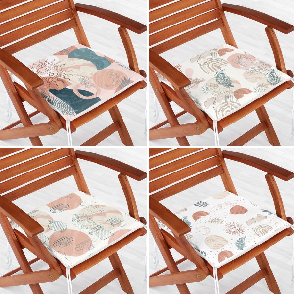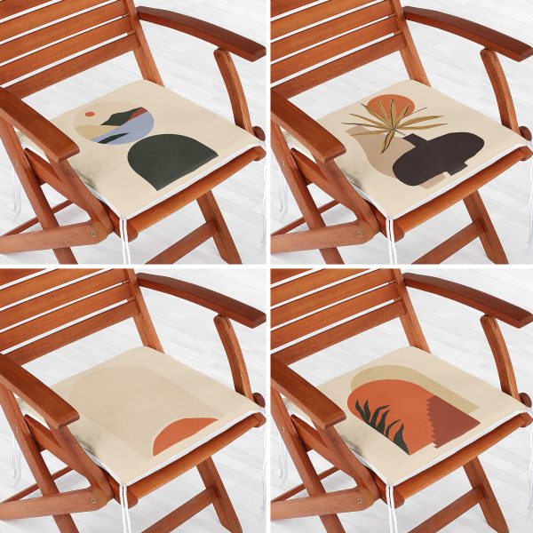 4’lü Etnik Çizimli Özel Tasarım Dijital Baskılı Modern Fermuarlı Sandalye Minderi Seti