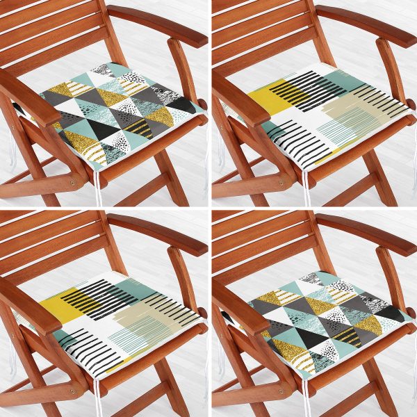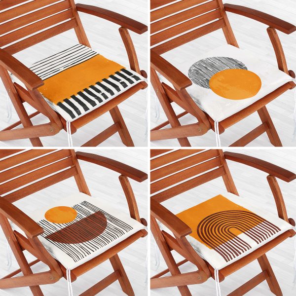 4’lü Renkli Zemin Üzerinde Geometrik Çizimli Modern Fermuarlı Sandalye Minderi Seti