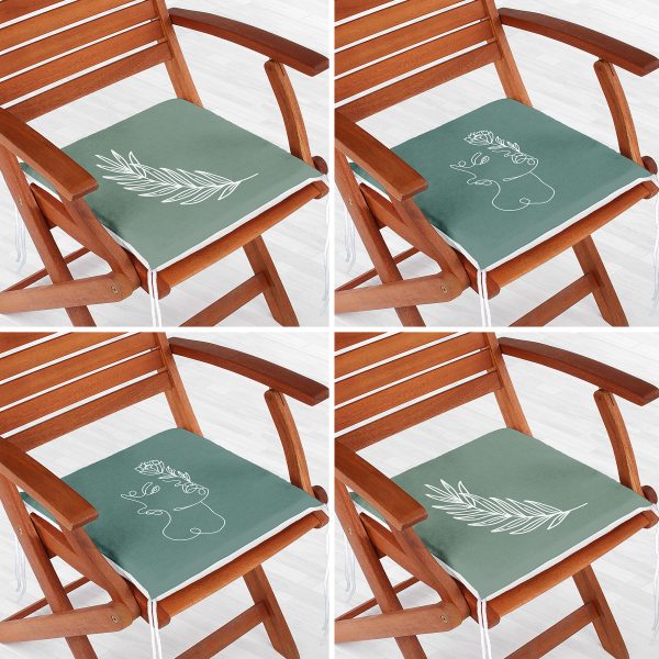 4’lü Renkli Zemin Üzerinde Onedraw Çizimli Yaprak Desenli Modern Fermuarlı Sandalye Minderi Seti