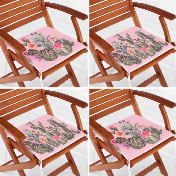 4’lü Renkli Zemin Üzerinde Kaktüs Desenli Modern Fermuarlı Sandalye Minderi Seti