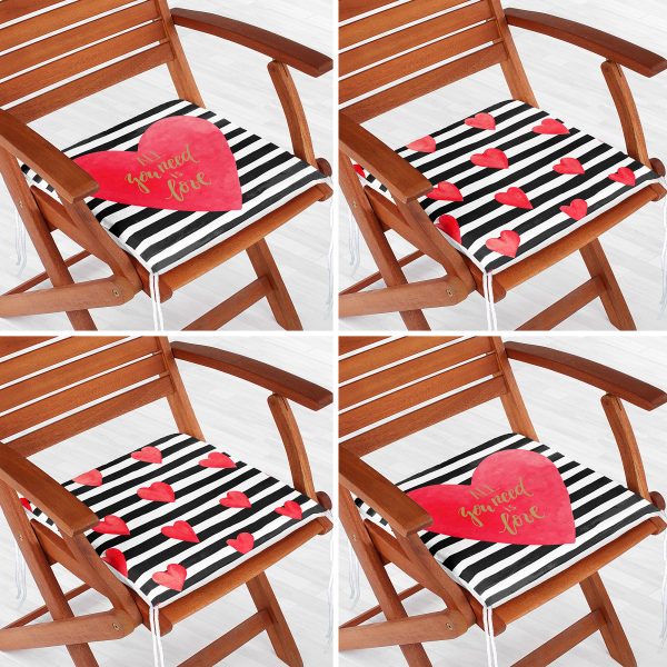 4’lü Sevgililer Günü Konseptli Özel Tasarım Modern Kombin Fermuarlı Sandalye Minderi Seti