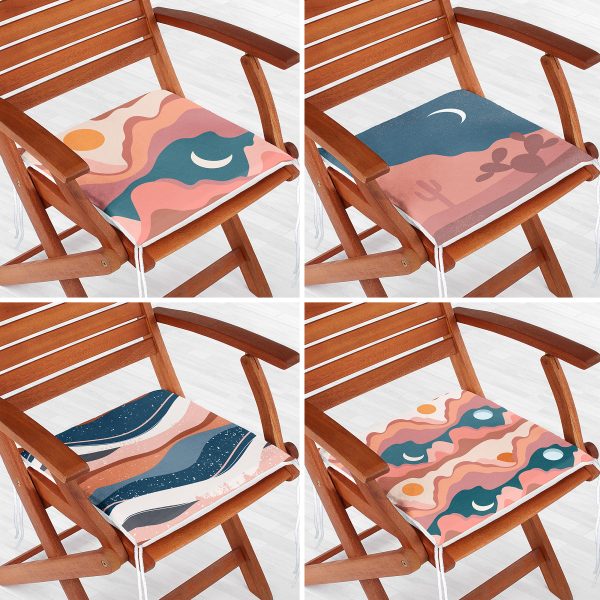 4’lü Dağ ve Ay Tasarımlı Dijital Baskılı Fermuarlı Sandalye Minderi Seti