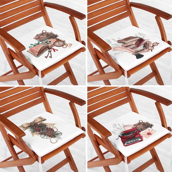 4’lü Beyaz Zemin Özel Tasarımlı Dijital Baskılı Modern Fermuarlı Sandalye Minderi Seti