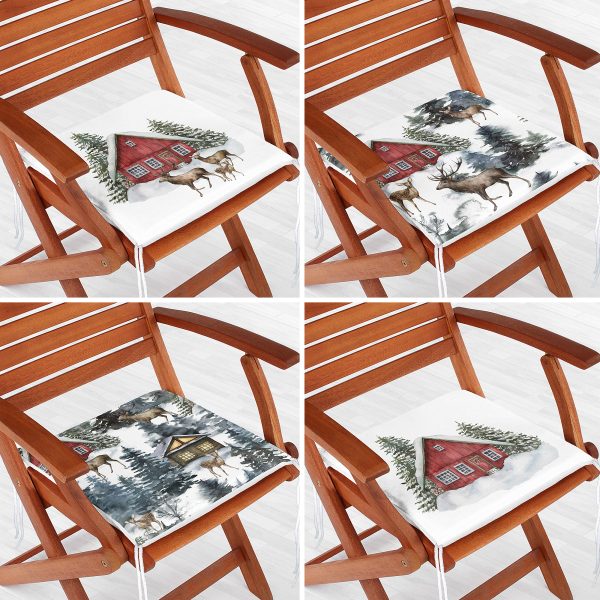 4’lü Bağ Evi Özel Tasarım Kış Temalı Dijital Baskılı Modern Fermuarlı Sandalye Minderi Seti