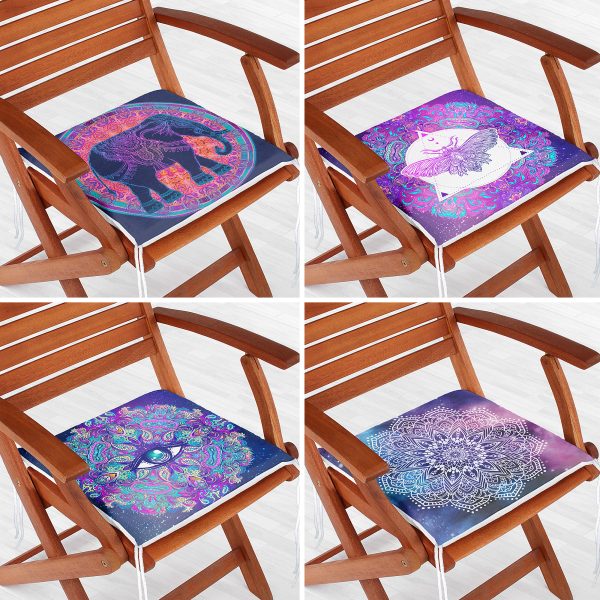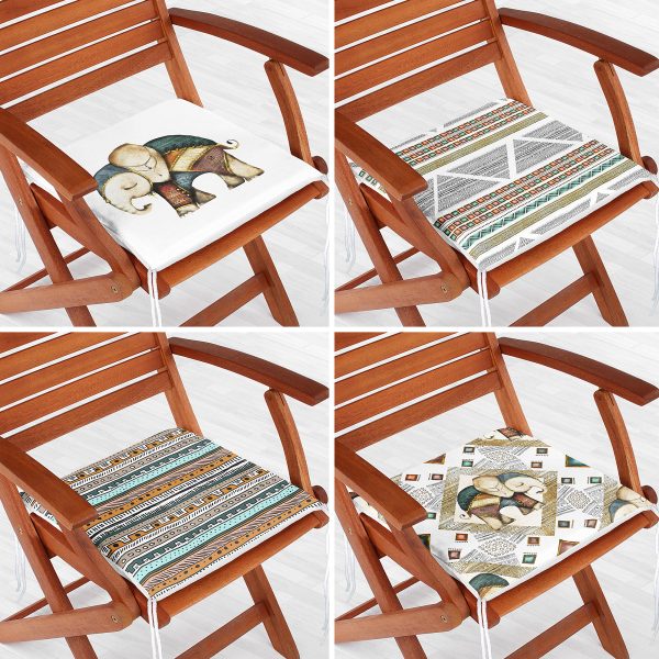 4’lü Etnik Fil Figürlü Dijital Baskılı Fermuarlı Sandalye Minderi Seti