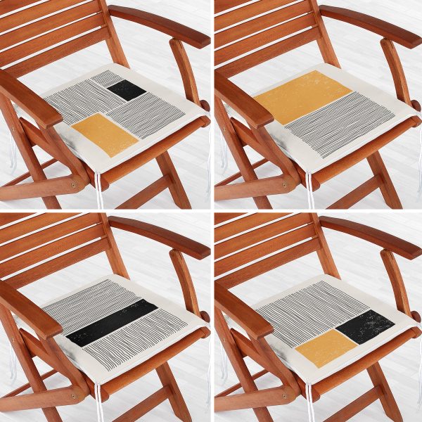 4’lü Krem Zemin Kareli Çizgi Motifli Fermuarlı Sandalye Minderi Seti