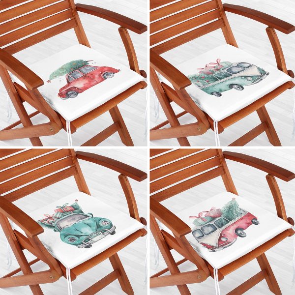 4’lü Çam Ağaçlı Araba Desenli Dijital Baskılı Modern Fermuarlı Sandalye Minderi Seti