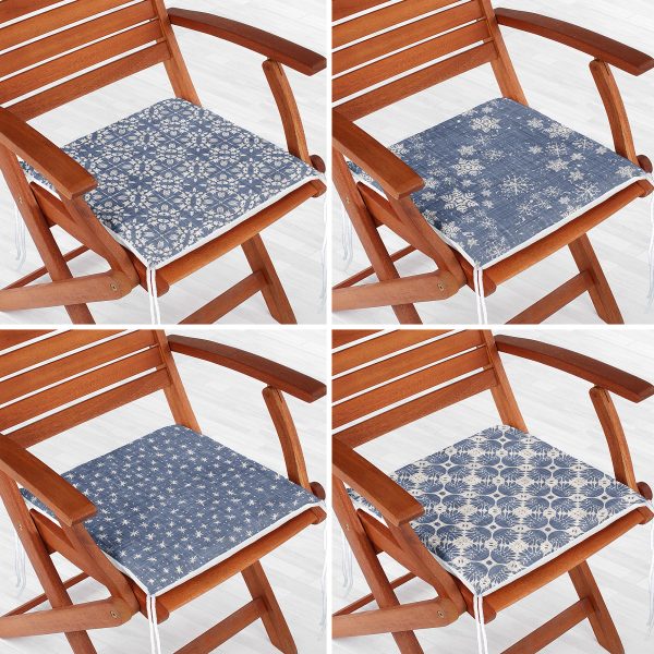4’lü Gökyüzü Zeminde Damask Baskılı Fermuarlı Sandalye Minderi Seti