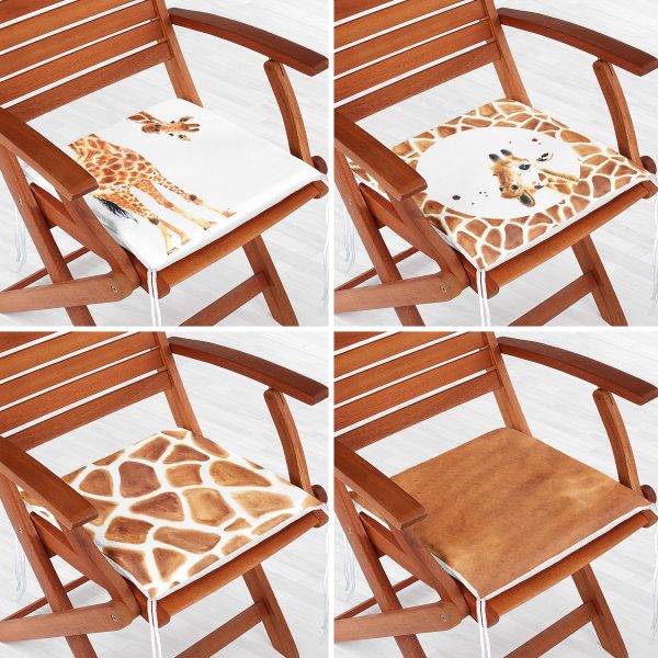 4’lü Zürafa Motifli Dijital Baskılı Fermuarlı Sandalye Minderi Seti