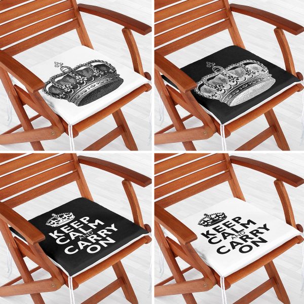 4’lü Keep Calm Temalı Kral Tacı Motrifli Fermuarlı Sandalye Minderi Seti