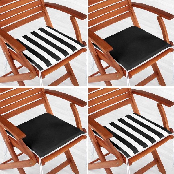 4’lü Siyah Beyaz Çizgili Düz Renk Fermuarlı Sandalye Minderi Seti