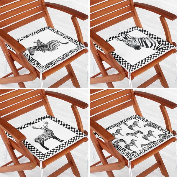 4’lü Siyah Beyaz Temalı Zebra Motifli Fermuarlı Sandalye Minderi Seti