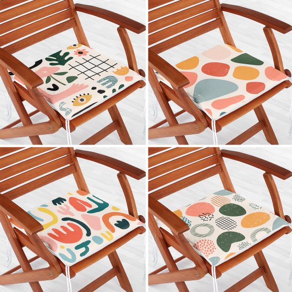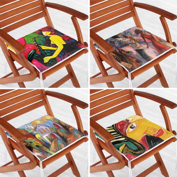 4’lü Soyut Çizimler Motifli Dijital Baskılı Dekoratif Fermuarlı Sandalye Minderi Seti