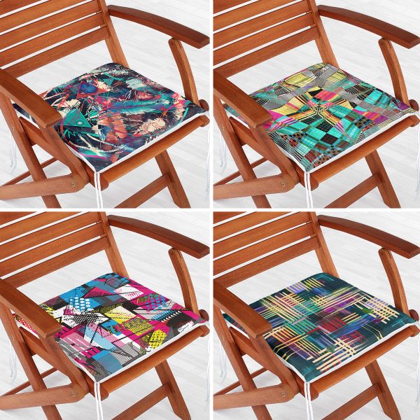 4’lü Geometrik Şekil Desenli Modern Fermuarlı Sandalye Minderi Seti