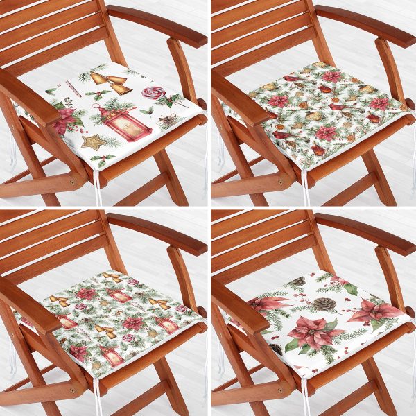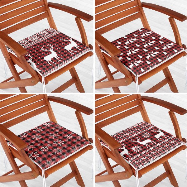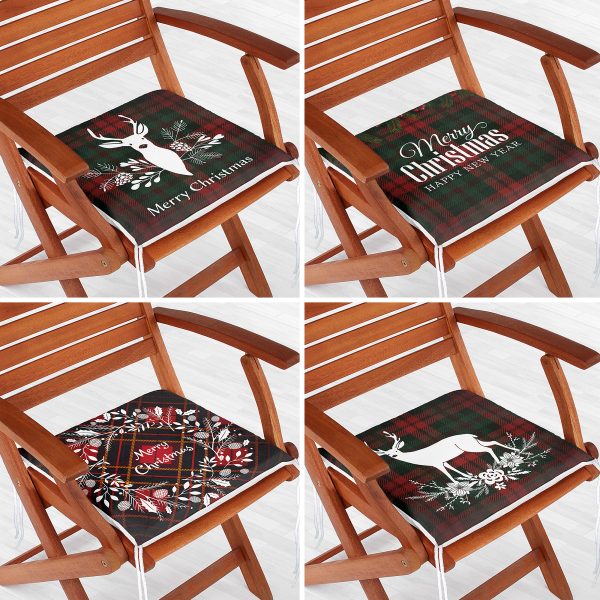 4’lü Ekose Zeminli Yılbaşı Desenli Fermuarlı Sandalye Minderi Seti