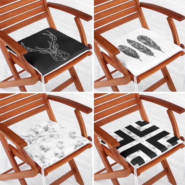 4’lü Siyah Beyaz Renkli Fermuarlı Sandalye Minderi Seti