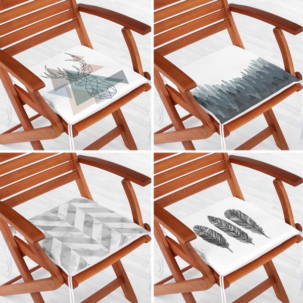 4’lü Dijital Baskılı Dekoratif Fermuarlı Sandalye Minderi Seti