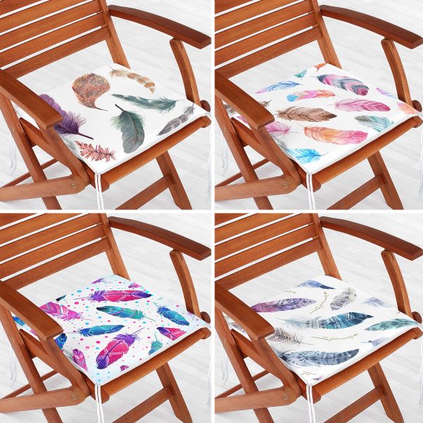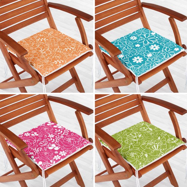 4’lü Renkli Zemin Beyaz Çiçek Çizimli Fermuarlı Sandalye Minderi Seti