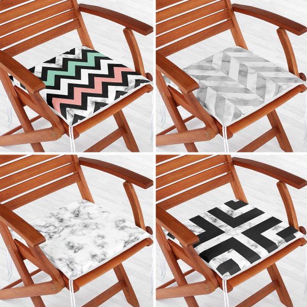 4’lü Mermer Motifli Zigzag Tasarımlı Fermuarlı Sandalye Minderi Seti