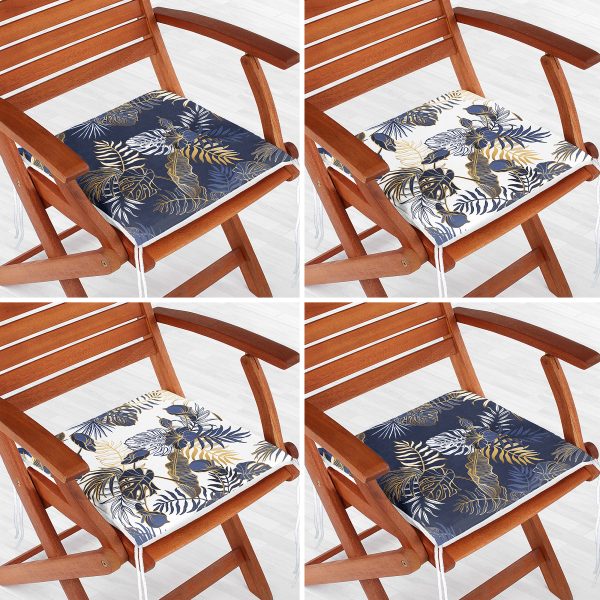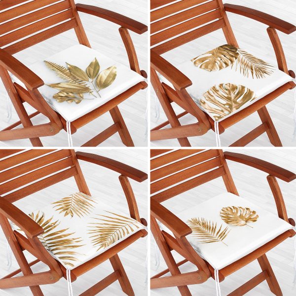 4’lü Gold Tasarımlı Yaprak Motifli Fermuarlı Sandalye Minderi Seti