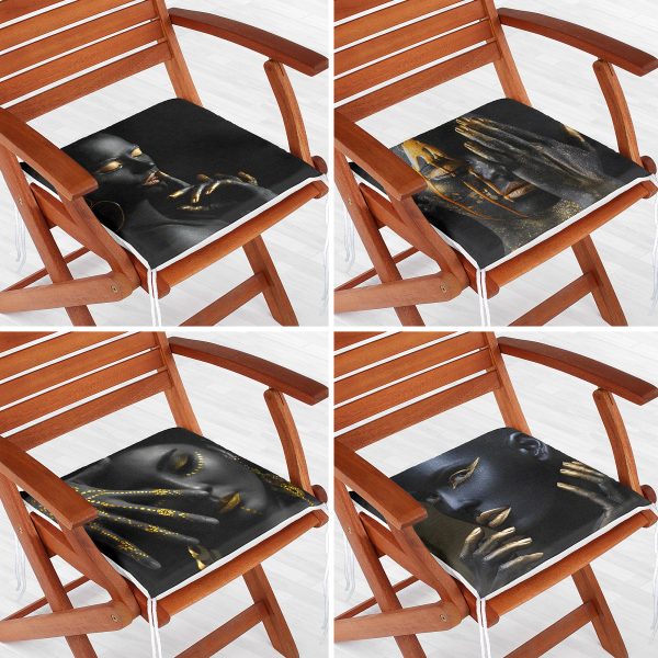 4’lü Gold Detaylı Siyahi Kadınlar Fermuarlı Sandalye Minderi Seti