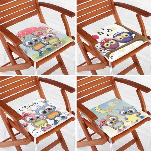 4’lü Sevimli Baykuş Motifli Fermuarlı Sandalye Minderi Seti