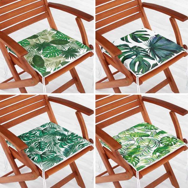 4’lü Yeşil Tropik Yapraklar Dijital Baskılı Fermuarlı Sandalye Minderi Seti